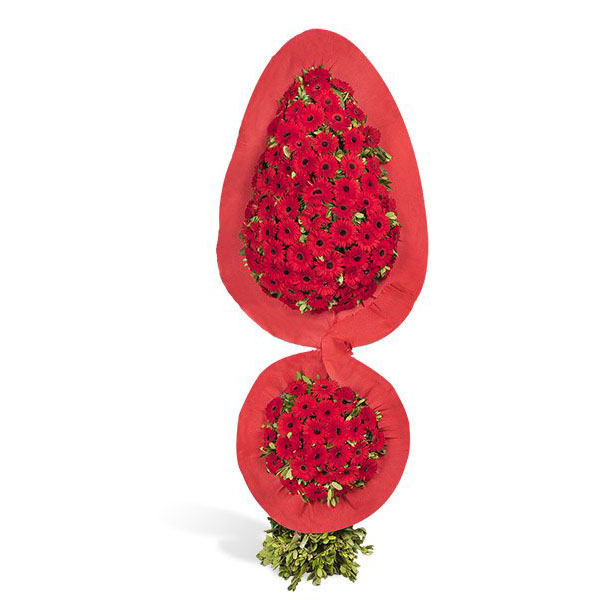 2 katlı kırmızı jerbereli çelenk 50 adet gerbereden oluşuyor çok muhteşem hediye