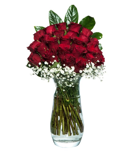 aşkınıza unutulmaz süpriz yapmak istermisiniz silindir cam vazoda cipso ve 25 kırmızı gül arajmanı