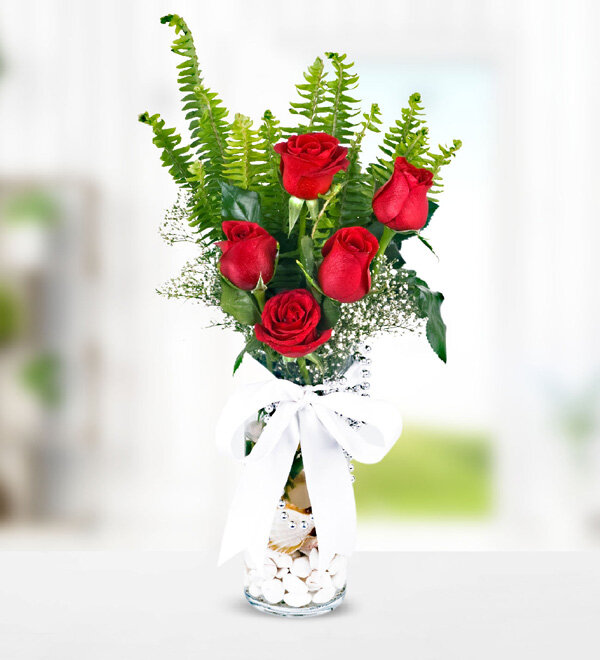 5 adet kırmızı gül ve kristal vazoda hazırlanmış ürün herkes çiçek göndersin dye bu fiyat