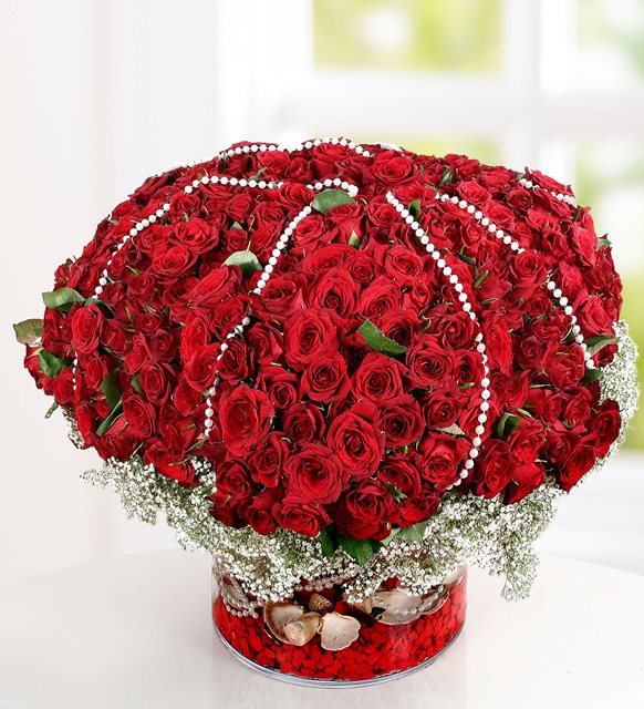 Büyük boy cam vazo içerisinde 500 adet kırmızı gül. Kırmızı gül, büyük aşkın simgesidir. Güllerin sayısı, duyduğunuz aşkın büyüklüğünü anlatır. İşte sönmeyen aşkların çiçeği, sözcüklerin anlatmaya yetmediği büyük aşkların en güzel göstergesi, her biri aşkın farklı bir halini anlatan 500 gülün bir araya geldiği aşk dolu bir vazo. Sevdiğiniz kişinin gözlerini dolduracak kadar sevindirecek, büyülü güzellikte bir hediye.