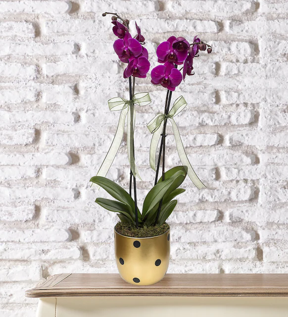 Hayatınızın kadınını kraliçeler gibi hissettirmek istediğinizde ona mor orkideden daha güzel bir hediye veremezsiniz. Çünkü mor orkide cesareti, gösterişi ve asaleti temsil eder. Mor orkide ilgili tüm bu bilgilerden sonra, sevdiğiniz kadına bu şekilde hissettirmek istiyorsanız, ona Puantiyeli Vazoda 2 Dal Mor Orkide Çiçeği ile muhteşem bir sürpriz yapabilirsiniz.