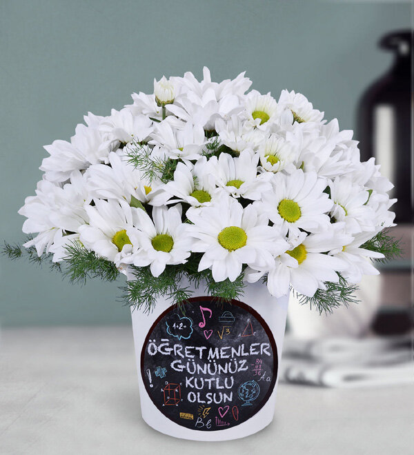 Eğitimin önemi dünyada kabul edilmiş en büyük gerçeklerdendir. Eğitim neferleri öğretmenlerimize, bu özel günlerinde Öğretmenler Günü Temalı Papatya Bahçesi aranjmanını hediye ederek meslek aşklarını çoğaltın! Not: Papatyaların yapısı gereği aranjmandaki çiçek adedine tomurcuklar da dahildir.