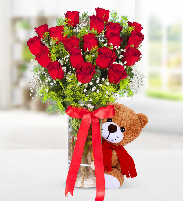 sade fakat iddealı bir tasarım ile özel olarak haızrlanmışm olan güller ve ayıcık sevdiklerinizi mutlu etmek istermisiniz