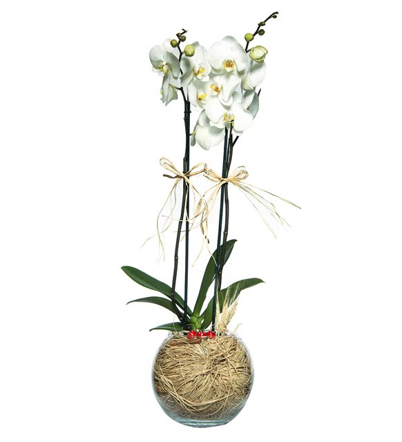 sevdiginiz kadına özel günlerde yada hiç bir neden yokken çiçek gönderdiyseniz ve artık daha özel bir şey arıyorum diyorsanız sizin için önerimiz var.mahsum duygularınızı dile getirmeniz ve ona zerafetini hatırlatmanız cam fanusda 2 dal beyaz orkide tam sizxe bir şeçim olabilir