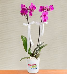 dogum gunu süprizsiz olmaz ? dogum gunu mesajlı saksıyla 2 dal mor orkide sevdiklerinizn yeni yasına ugur getirecek
