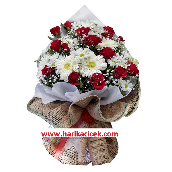 papatya ve jerbere güllerden hazırlanmış vip el buketi
