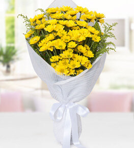 50 adet sarı papatyalar ve yeşilliklerle hazırlan mış buketimiz