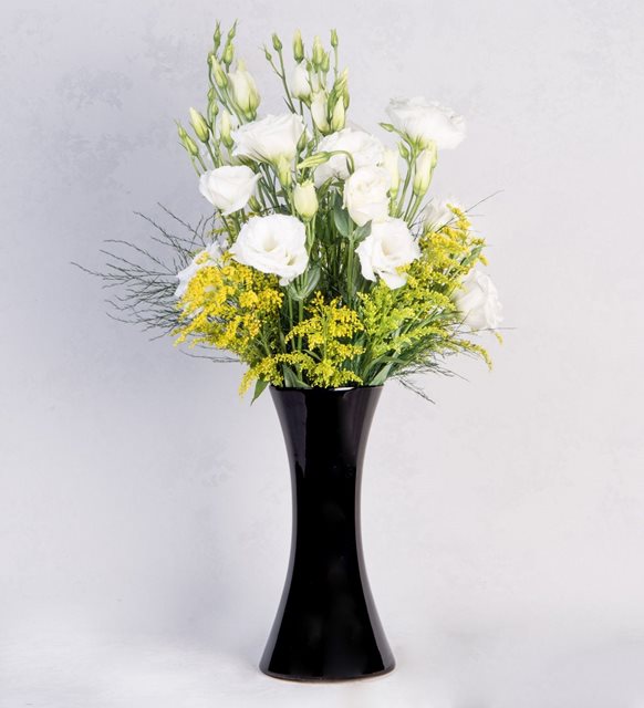kalipso vazoda b eyaz lisyantuslar ve cipso solilerden oluşan arajman sevdiklerinizi bizimle güldürmek istermisiniz